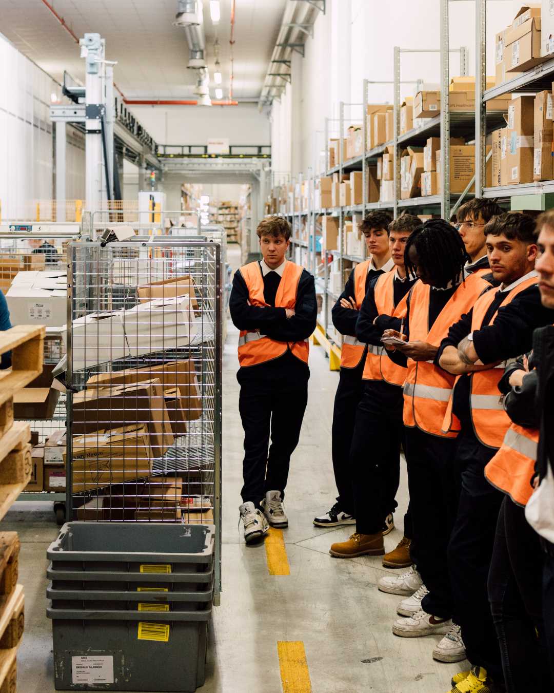 In mattinata, hanno esplorato il magazzino di Friuli Intagli, approfondendo le logiche di stoccaggio e le operazioni di movimentazione del prodotto finito. L’incontro con il team logistico, tra cui Michele Scroccaro e l’ex-allievo Alessandro Paiero, ha offerto un’importante visione pratica delle dinamiche aziendali.